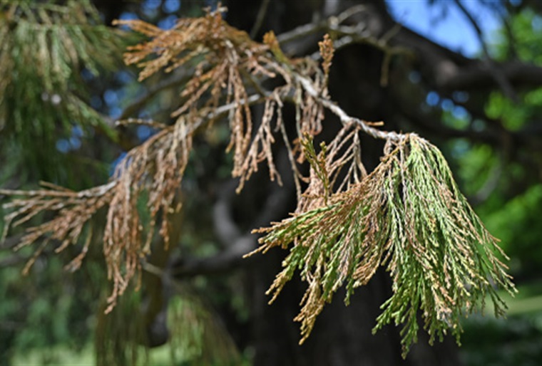 One of the two giant sequoias in St David''s Park is showing severe signs of distress.