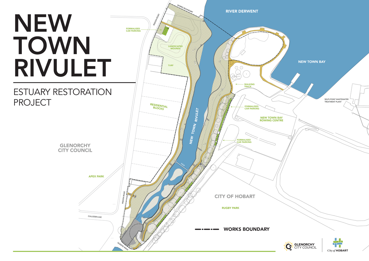 The project builds on a concept described in the New Town Rivulet Sediment Weir Removal Feasibility Report. This was prepared by Dryside Engineering in October 2021, and complements the 2009 Selfs Point Masterplan.