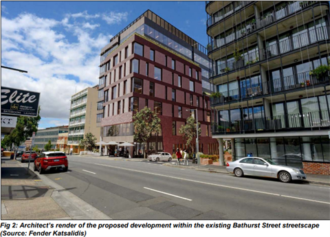 The building will have a maximum height of 40.5m, a total gross floor area of 13,733m², and contribute $445,000 toward civic amenities.
