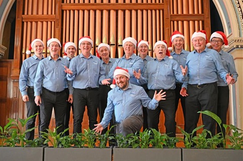 The project brought together men from across Hobart to learn and perform Christmas songs, culminating in pop-up performances in the CBD, hospital wards, and local carols events.