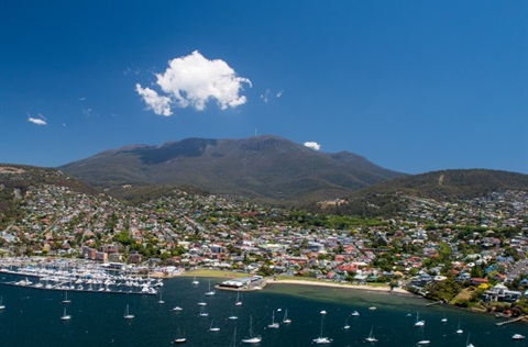 Kunanyi / Mt Wellington provides the backdrop to Hobart and is a short distance by vehicle from the city centre.