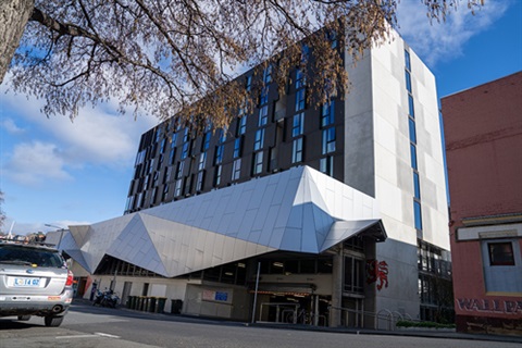 The Melville Street (Midtown) Car Park is located under the UTAS Hobart Apartments. The entry is on Melville Street, between Elizabeth and Argyle streets.