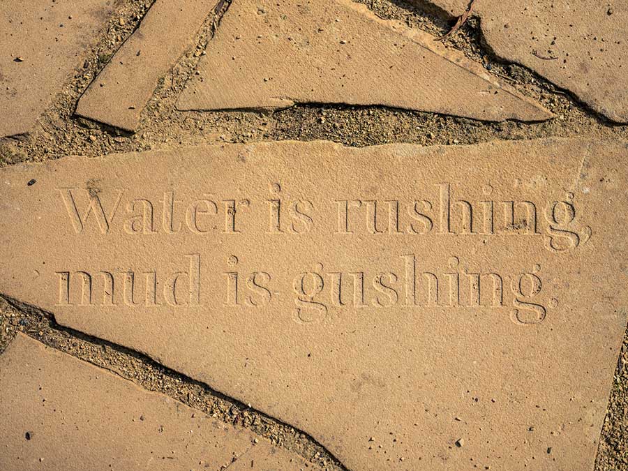At the point where the birds are situated, fragments of stories, experiences and reflections from local residents are inscribed into the existing sandstone paving. Stories and responses were gathered from local residents through a public call-out.